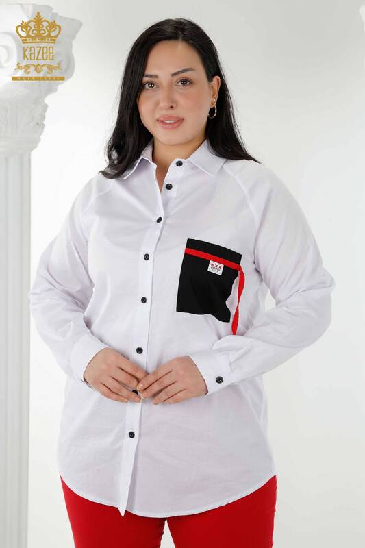 عمده فروشی پیراهن زنانه جیبی با جزئیات تغییر رنگ سفید - 20352 | KAZEE