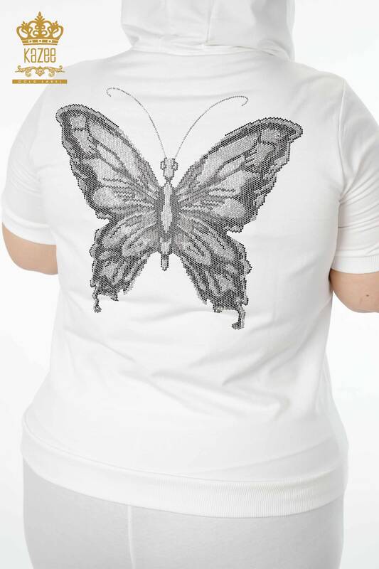فروش عمده ست گرمکن زنانه اکرو آستین کوتاه دوزی شده با طرح پروانه - 17391 | KAZEE