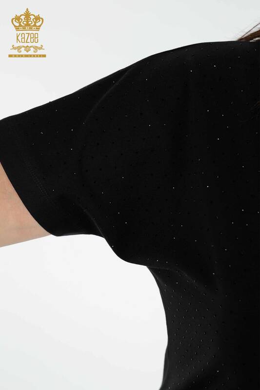 فروش عمده ست گرمکن زنانه آستین کوتاه سنگ دوزی نوشته مشکی - 17389 | KAZEE