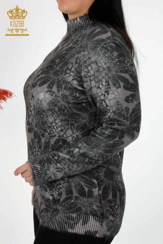 عمده فروشی ژاکت زنانه با سنگ کریستال گلدوزی شده انگورا چاپ دیجیتال راسو-16006 | کازی