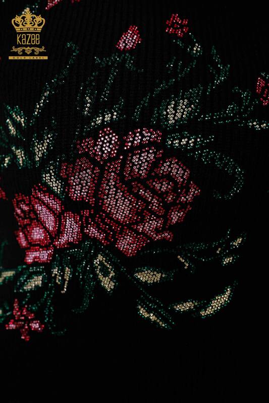 فروش عمده ژاکت زنانه طرح گل سنگ دوزی مشکی - 19106 | KAZEE