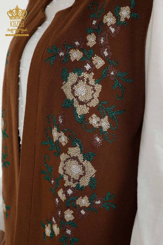 فروش عمده جلیقه زنانه گل دوزی سنگ دوزی قهوه ای - 30644 | KAZEE