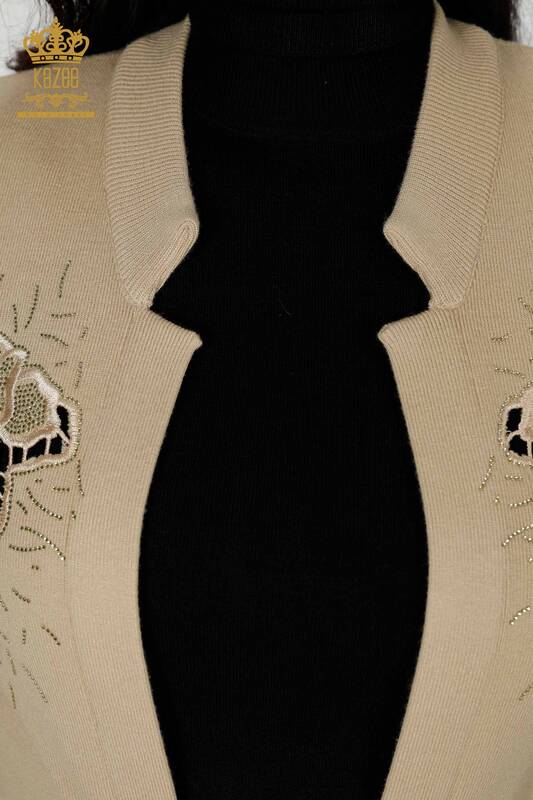 فروش عمده جلیقه زنانه با سنگ دوزی کراوات جیبی بژ - 16830 | KAZEE