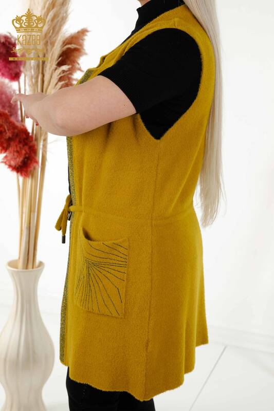 فروش عمده سنگ جلیقه زنانه زعفران جیبی طناب دوزی - 30244 | KAZEE