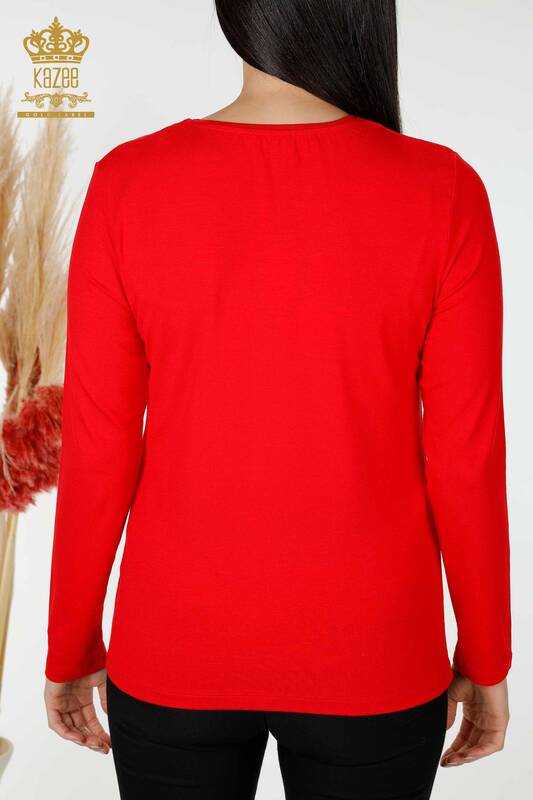 عمده فروشی بلوز زنانه با طرح گل سنگی گلدوزی شده قرمز - 79014 | کازی