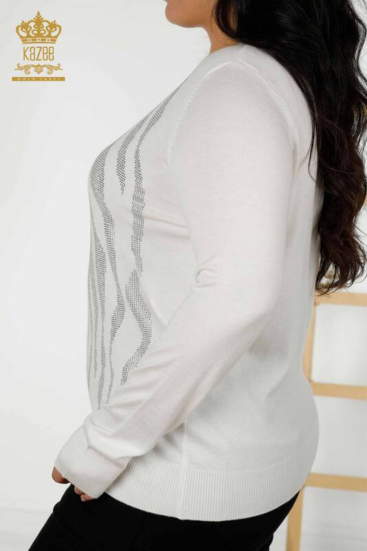 فروش عمده ژاکت بافتنی زنانه اکرو آستین بلند دوزی سنگ - 16728 | KAZEE