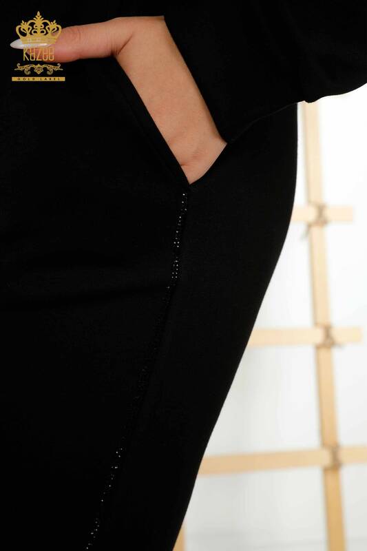 فروش عمده ست گرمکن زنانه سرپوش دار سنگ دوزی جیب زیپ دار مشکی - 20415 | KAZEE