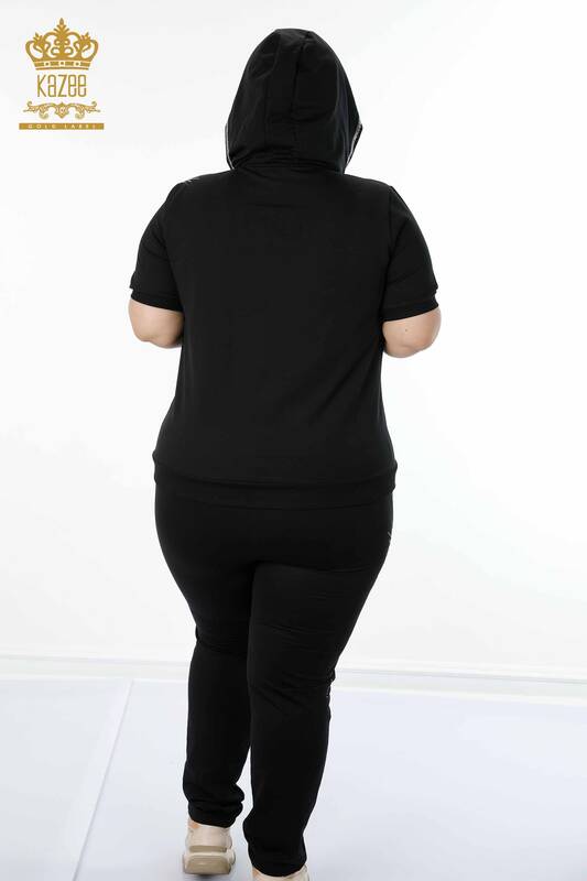 فروش عمده ست گرمکن زنانه سنگ دوزی - زیپ دار - کلاه دار - مشکی - 17395 | KAZEE