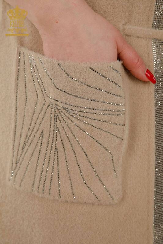 فروش عمده سنگ جلیقه زنانه بند دوزی جیبی بژ - 30244 | KAZEE