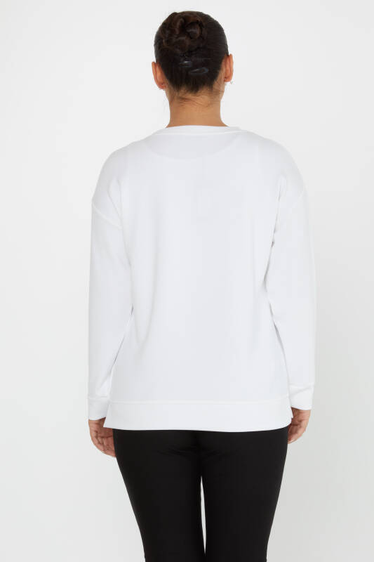 Felpa con stampa floreale con spacco dettagliato Ecru - 17807 | KAZEE (Set da 3 M-L-XL)