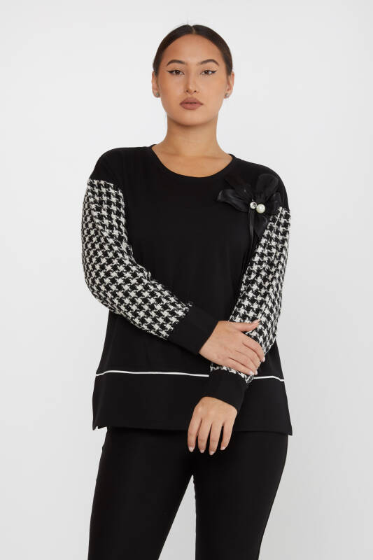 Felpa Spilla Dettagliata Motivo A Scacchi Nero - 17797 | KAZEE (Set da 3 L-XL-2XL)