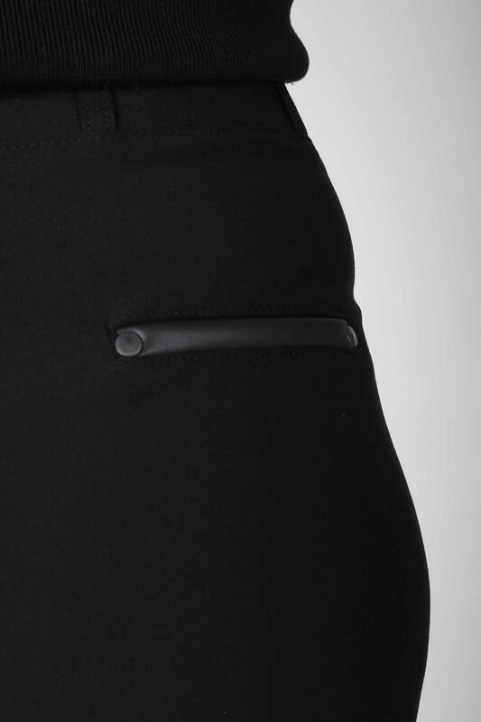 Fusta Buton Detaliat Talie Elastică Negru - 4220 | KAZEE (Set de 4 42-44-46-48)