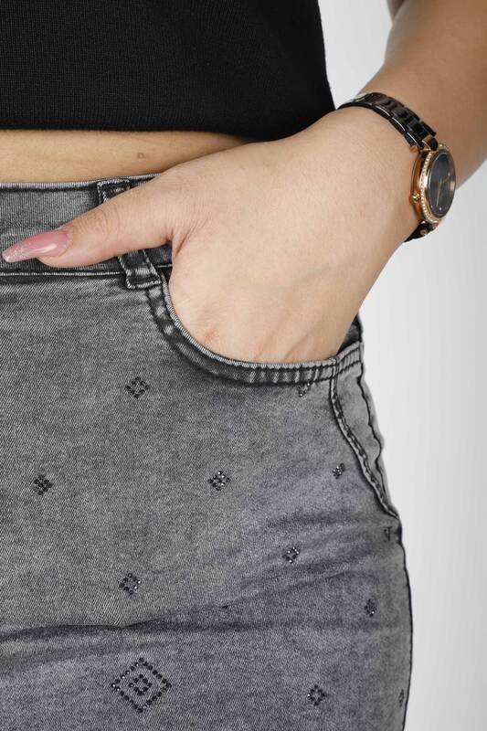 Fusta Brodata Pietra Buzunar Antracit - 4183 | KAZEE (Set de 4 42-44-46-48)