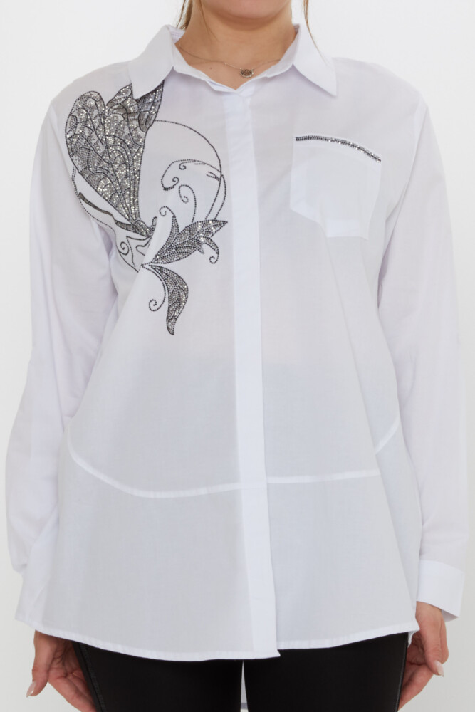 Gömlek Kelebek Desenli Cep Detaylı Taş İşlemeli Ekru - 20535 | KAZEE (3'lü Set 46-48-50)