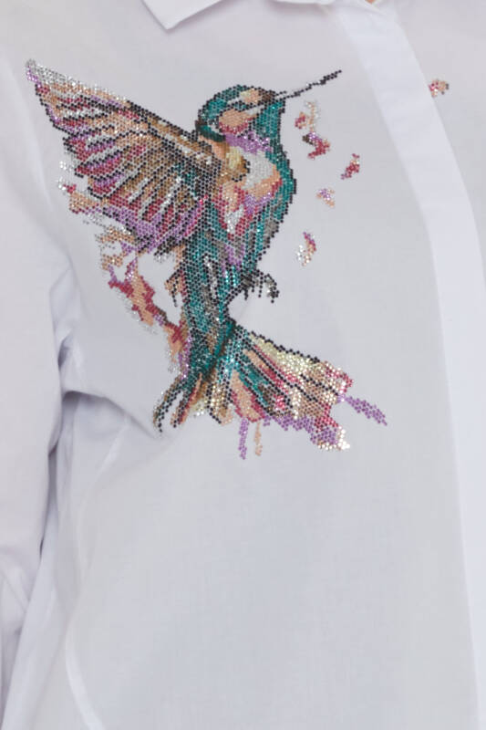 Gömlek Kuş Desenli Renkli Taş İşlemeli Ekru - 20518 | KAZEE (3'lü Set 46-48-50)