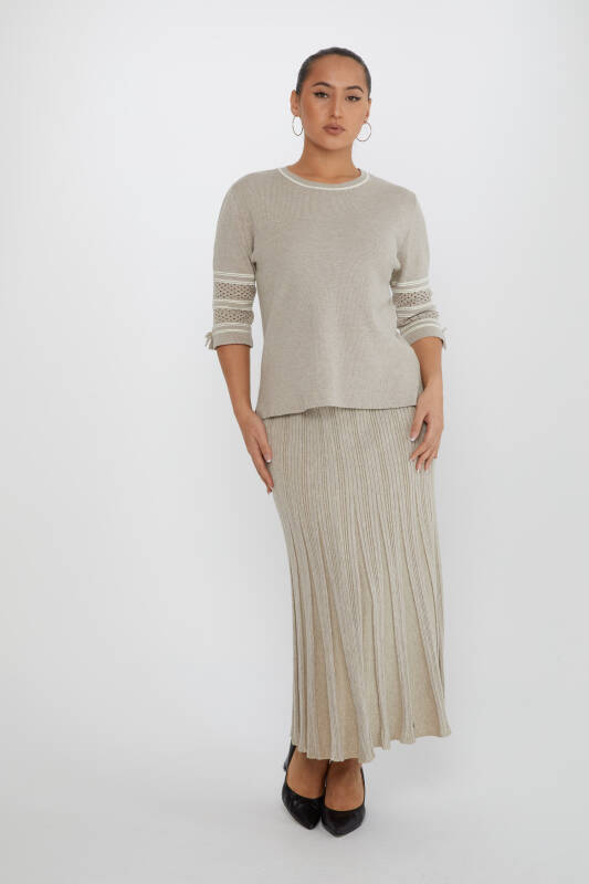 Gonna in maglia con dettagli glitterati di transizione, colore visone - 31530 | KAZEE (Set di 3 M-L-XL)