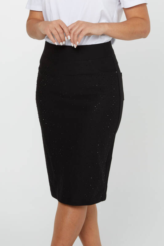 Gonna Pietra Ricamata Elastica In Vita Nera - 4162 | KAZEE (Set da 4 42-44-46-48)