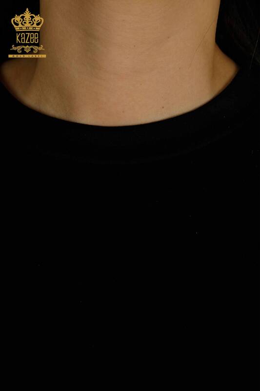 Großhandel Damen-Trainingsanzug-Set mit Taschen, Basic-Kurzarm, Schwarz – 17698 | KAZEE