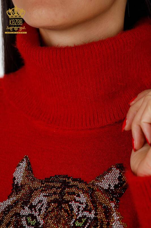 Großhandel für Damen mit Tigermuster und Stein bestickter Angora-Tunika