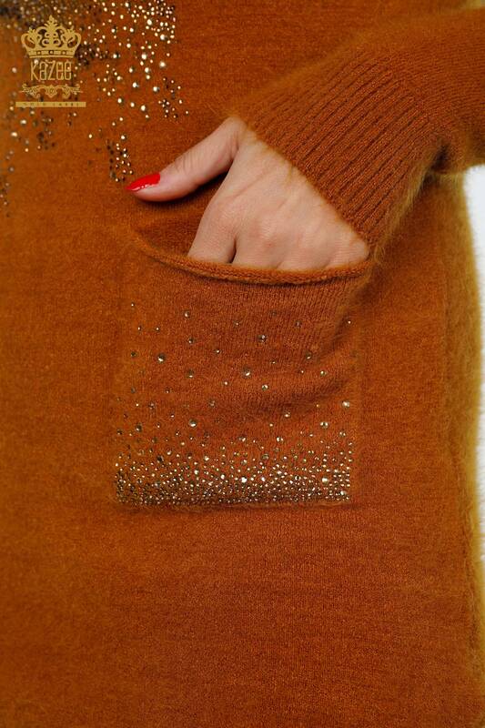 Großhandel Damen-Angora-Tunika mit Tigermuster, bestickter Steintasche – 18880 | KAZEE