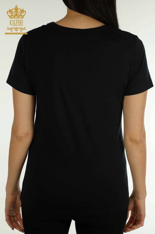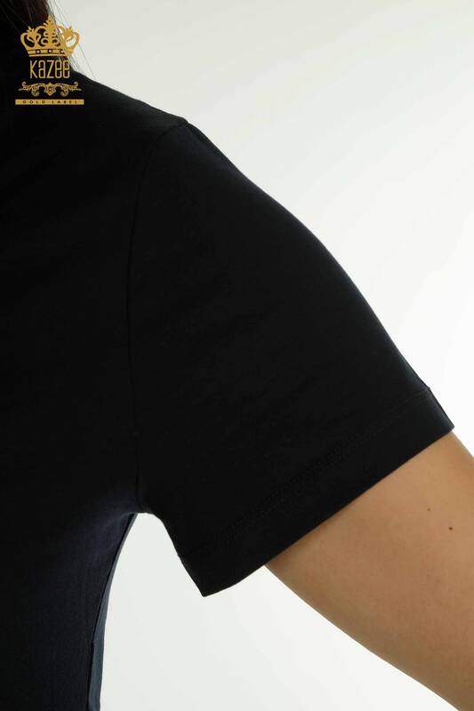 Großhandel Damenbluse American Model Basic Logo Marineblau - 79177 | KAZEE