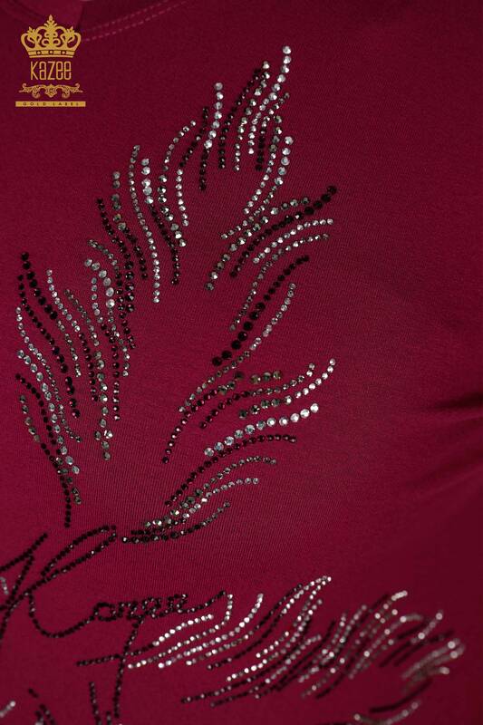 Großhandel Damenbluse Blattgemustert Stein bestickt Flieder - 77970 | KAZEE