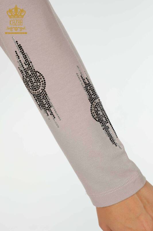 Großhandel Damenbluse Crystal Stone gestickt gemustert Nerz - 79043 | KAZEE