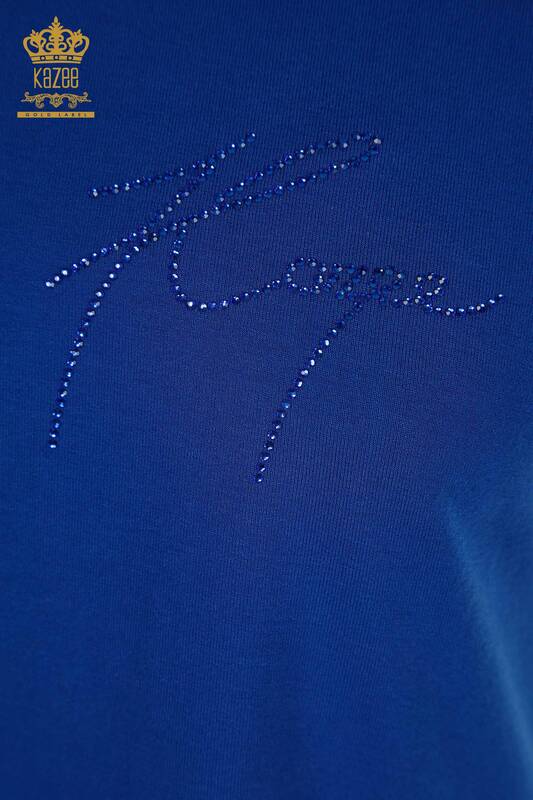 Großhandelsfrauen-Blusen-Knopf-detaillierter Stein bestickte Kurzarm-Saks - 79297 | KAZEE