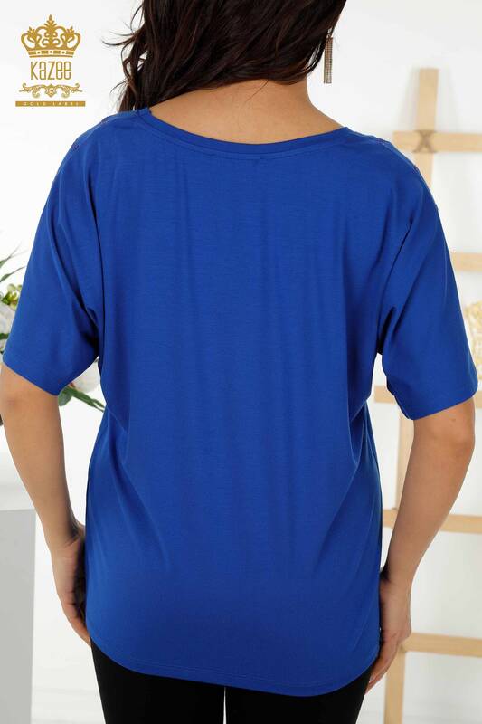 Großhandel Damenbluse Crystal Stone gestickt gemustert Saks - 79069 | KAZEE