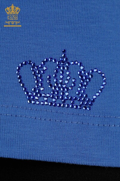 Großhandel für Damenblusen mit kurzen Ärmeln und Steinstickerei und V-Ausschnitt - 79561 | KAZEE