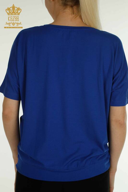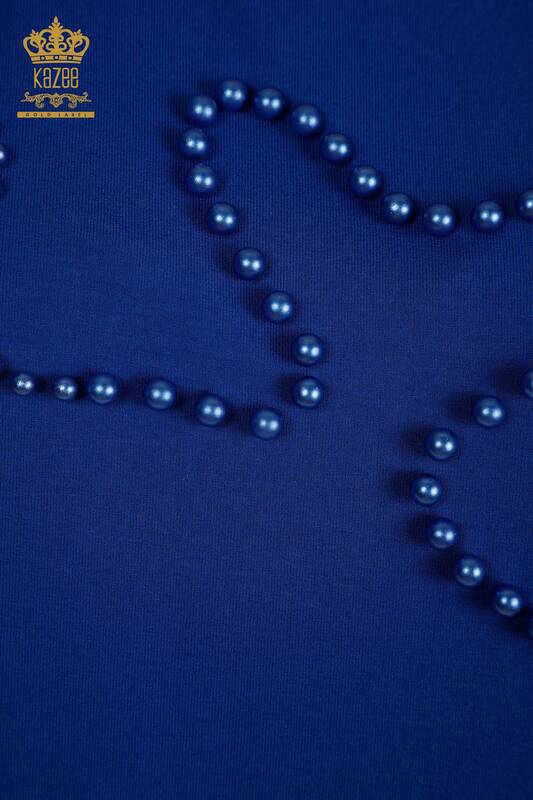 Großhandel Damenbluse mit Perlenstickerei, kurzärmlig, Saks – 79196 | KAZEE