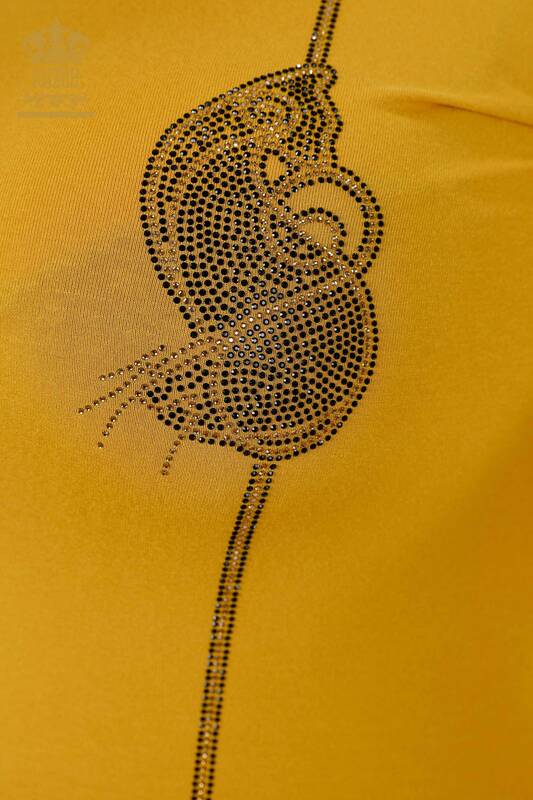 Großhandel Damenbluse Stone Bestickter Rundhals Safran - 79000 | KAZEE