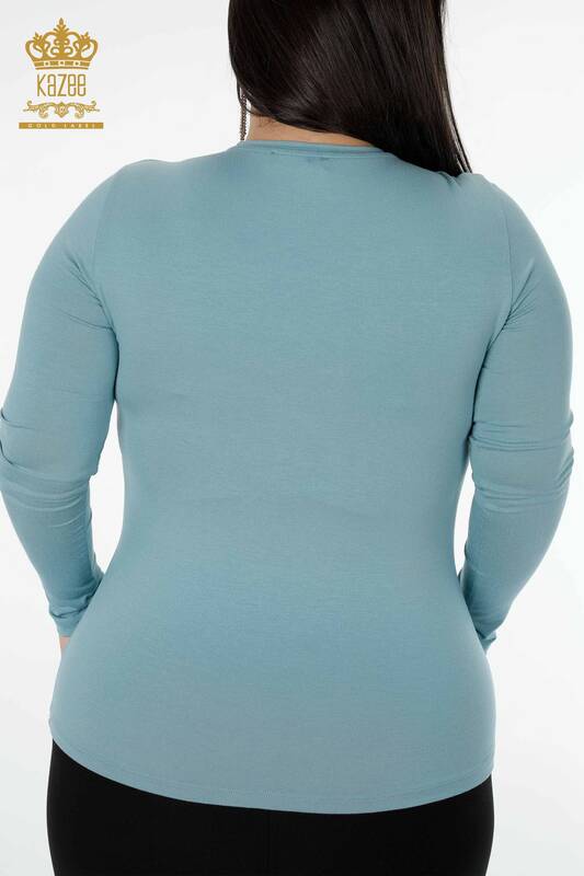 Großhandel Damenbluse Stone Bestickter Rundhalsausschnitt Blau - 79000 | KAZEE