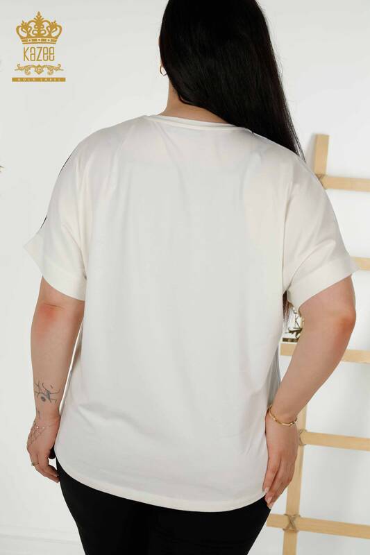 Großhandel Damenbluse mit kurzen Ärmeln, steingestickter Digitaldruck - 12080 | KAZEE