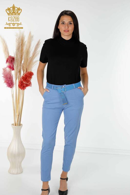 Großhandel Damenjeans mit Gürteltasche Blau - 3498 | KAZEE