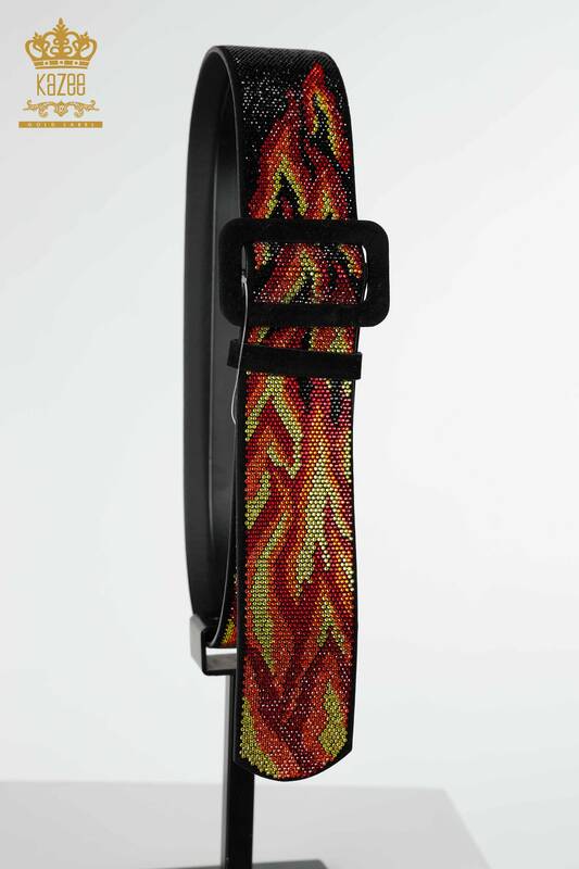 Großhandel Damengürtel Farbiger Stein Gesticktes Rot - 523 | KAZEE