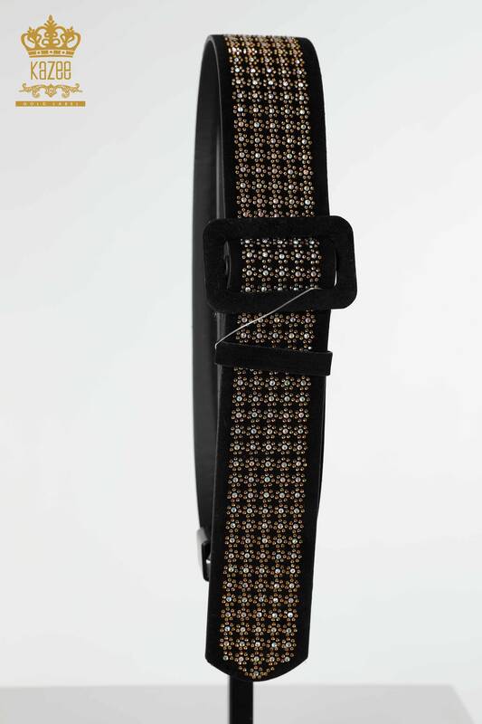 Großhandel Damen Gürtel Stone Bestickt Schwarz - 501 | KAZEE