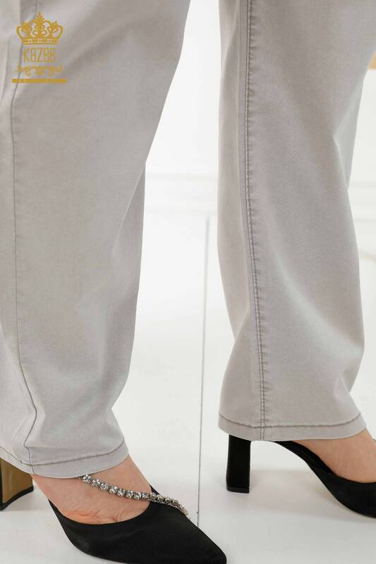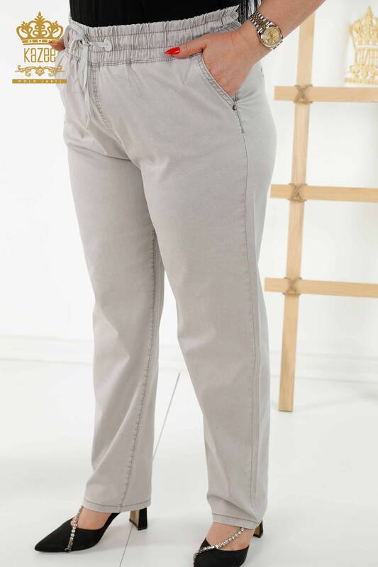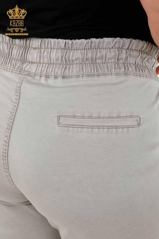 Großhandel Damenhose Taille Elastische Tasche Beige - 3673 | KAZEE