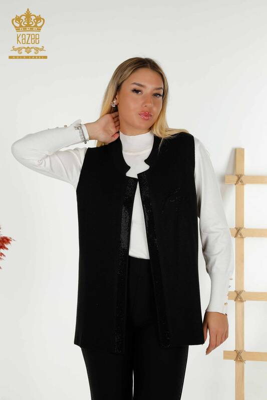 Großhandel Damen-Kurzweste mit Steinstickerei in Schwarz - 30409 | KAZEE