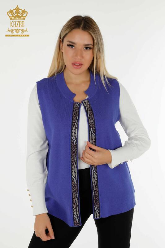 Großhandel Damenweste Leopardenstein bestickt Indigo - 30616 | KAZEE
