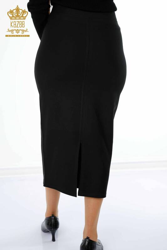 Langer Damenrock mit Schlitz und Steinbestickung im Großhandel - 4207 | KAZEE