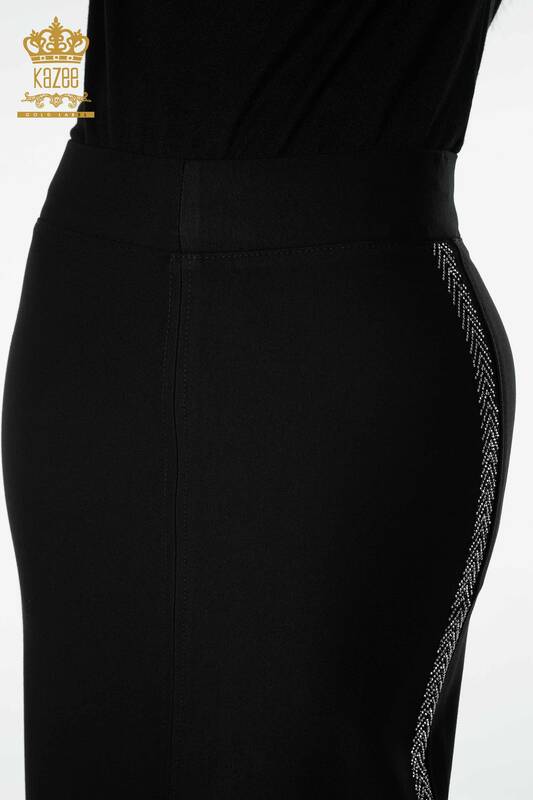 Großhandel Damenrock Langer, mit Steinen bestickter Schlitzdetail Schwarz - 4187 | KAZEE