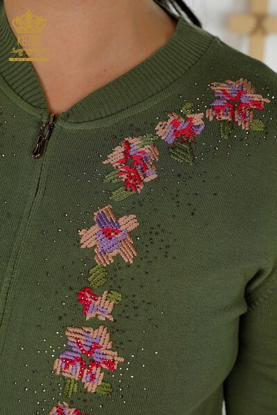 Großhandel Damen-Trainingsanzug-Set, Blumenmuster, Steinstickerei, Khaki – 16658 | KAZEE