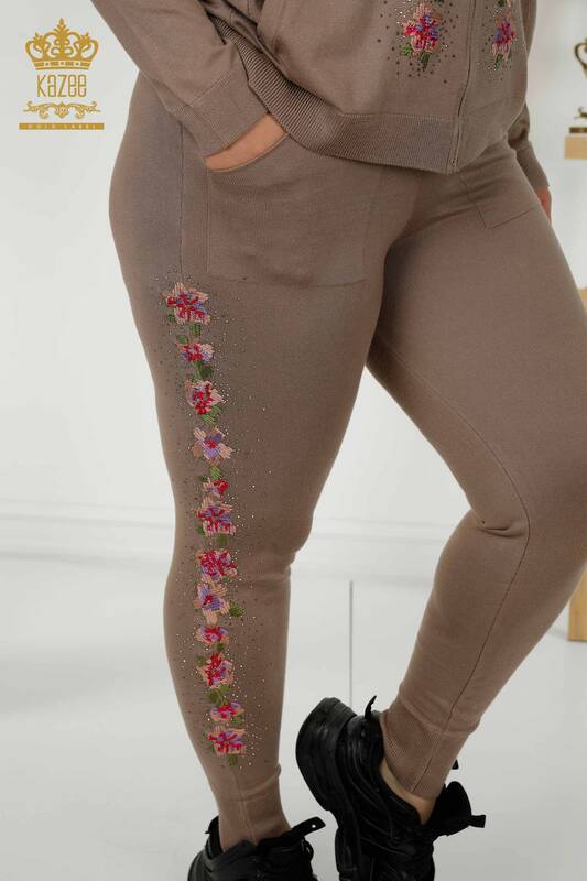 Großhandel Damen-Trainingsanzug-Set mit Blumenmuster, Steinstickerei, Nerz – 16658 | KAZEE