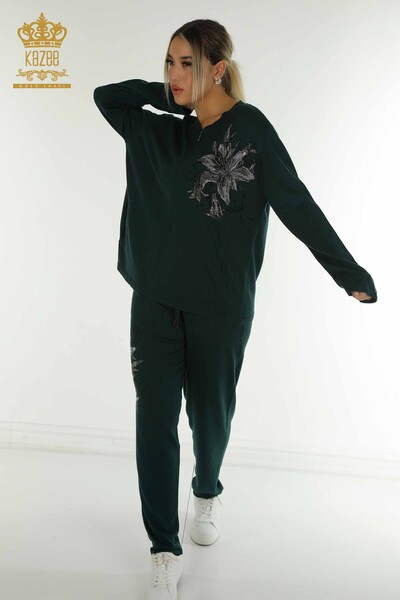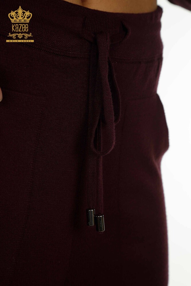 Großhandel Damen-Trainingsanzug-Set, Blumenmuster, Reißverschluss mit Taschen, Pflaume - 16661 | KAZEE