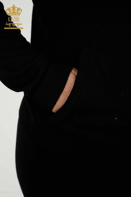 Großhandel Damen-Trainingsanzug-Set, Blumenmuster, Steinstickerei, Schwarz – 16658 | KAZEE