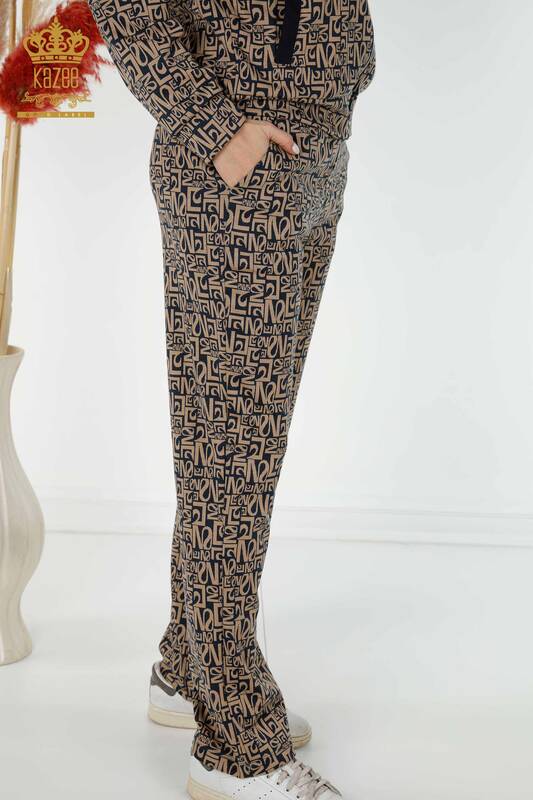 Großhandel Frauen Trainingsanzug Set gemischt gemustert Marineblau Nerz - 17433 | KAZEE