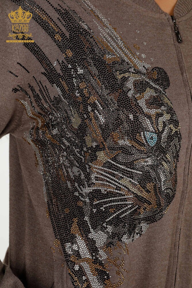 Großhandel Damen-Trainingsanzug-Set mit Leopardenmuster, Reißverschluss und Steinstickerei in Nerz – 16660 | KAZEE