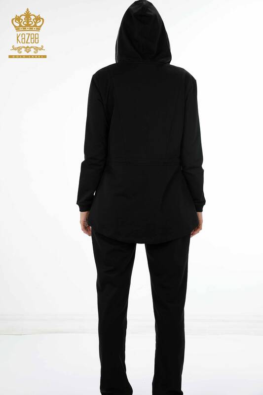 Großhandel Damen-Trainingsanzug-Set mit Kapuze, Edelsteintaschen, gebundenem Seil – 17439 | KAZEE