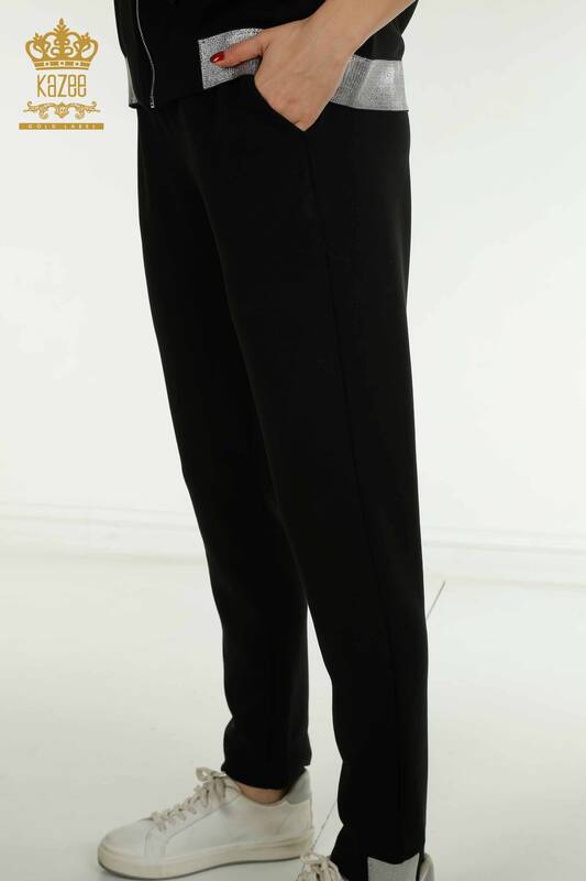 Großhandel Damen-Trainingsanzug-Set mit Reißverschluss und Kapuze, Steinstickerei, Schwarz – 17638 | KAZEE